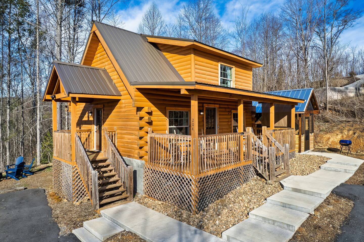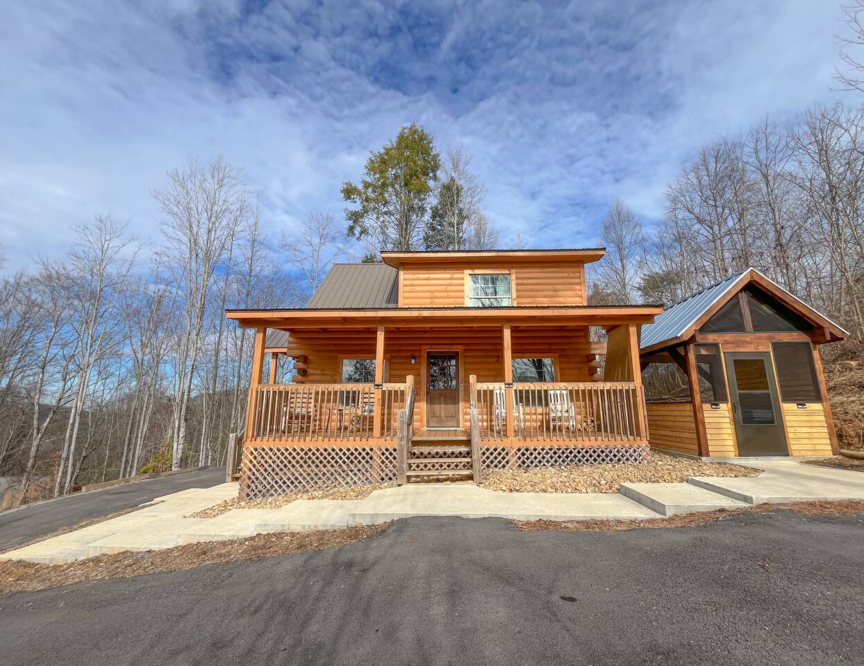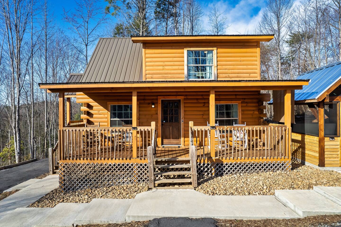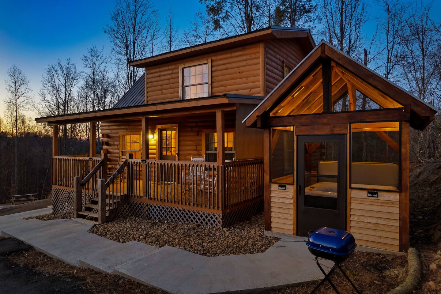 Peaceful and centrally-located true log cabin minutes from Pigeon Forge and Gatlinburg. Right off of the Spur! This cabin offers 2 bedrooms with 2 full baths that sleeps up to 4 people. Private setting but close to all attractions like hiking, Dollywood, restaurants, dinner shows and so much more. The cabin has a large front porch with rocking chairs to sit and enjoy the mountains fresh air and view! Smart tv with very fast and reliable wifi, charcoal grill. Perfect for couples, small families. Card/board games available, corn hole and a fire pit! New Hot Tub is up and running! Screened enclosure for year round use!