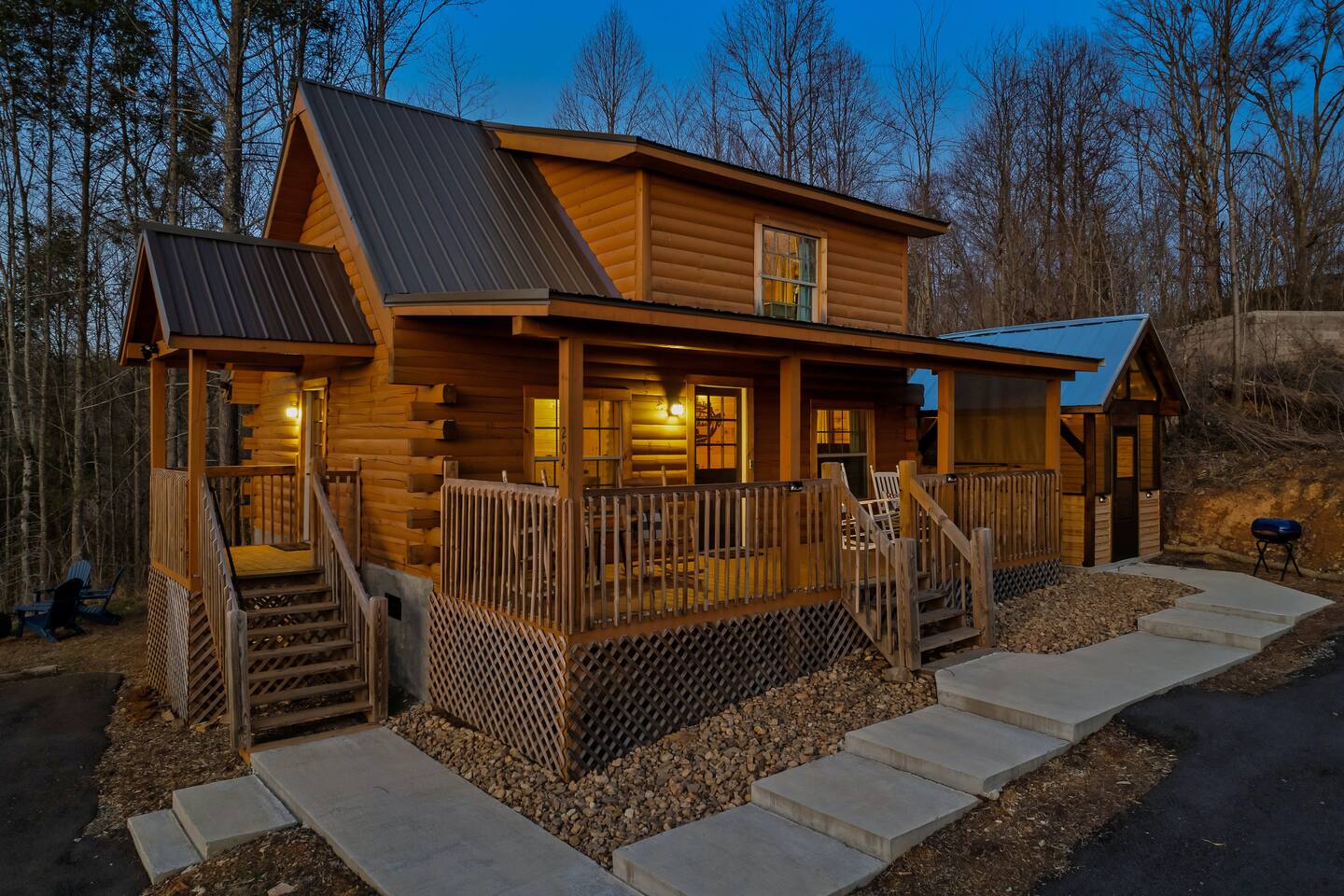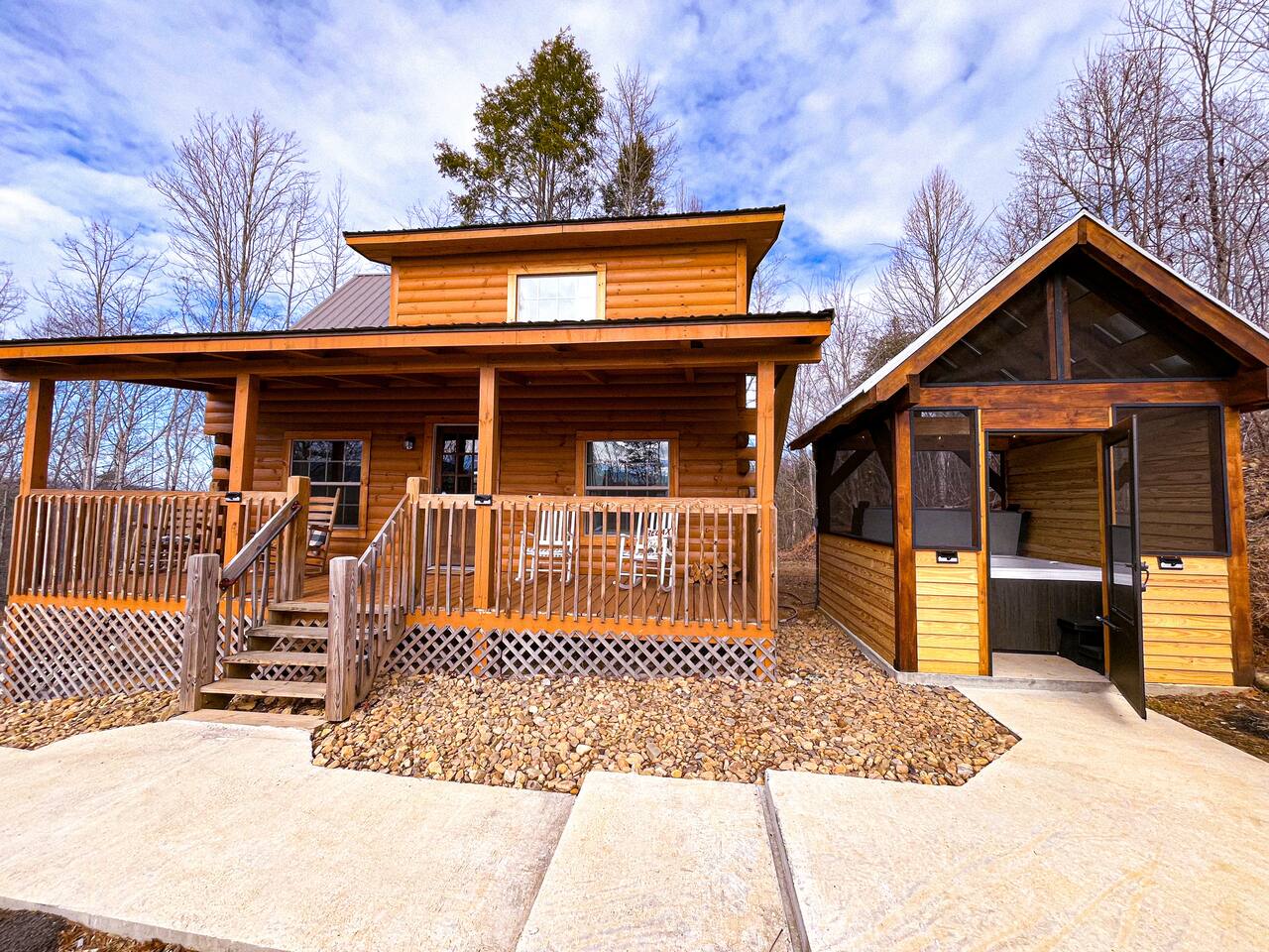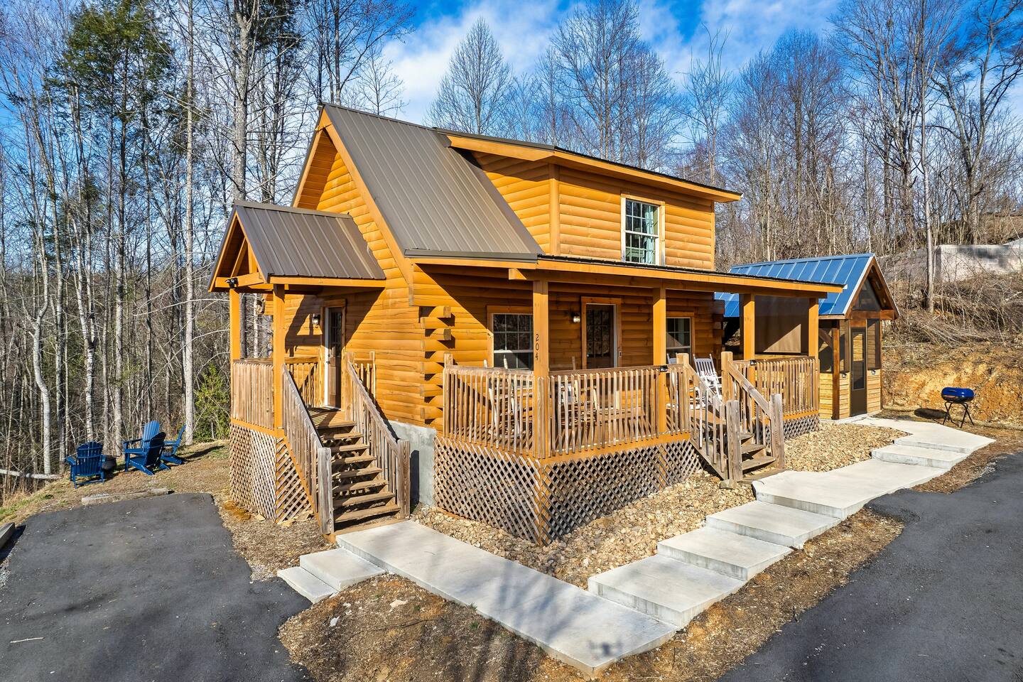 Peaceful and centrally-located true log cabin minutes from Pigeon Forge and Gatlinburg. Right off of the Spur! This cabin offers 2 bedrooms with 2 full baths that sleeps up to 4 people. Private setting but close to all attractions like hiking, Dollywood, restaurants, dinner shows and so much more. The cabin has a large front porch with rocking chairs to sit and enjoy the mountains fresh air and view! Smart tv with very fast and reliable wifi, charcoal grill. Perfect for couples, small families. Card/board games available, corn hole and a fire pit! New Hot Tub is up and running! Screened enclosure for year round use!