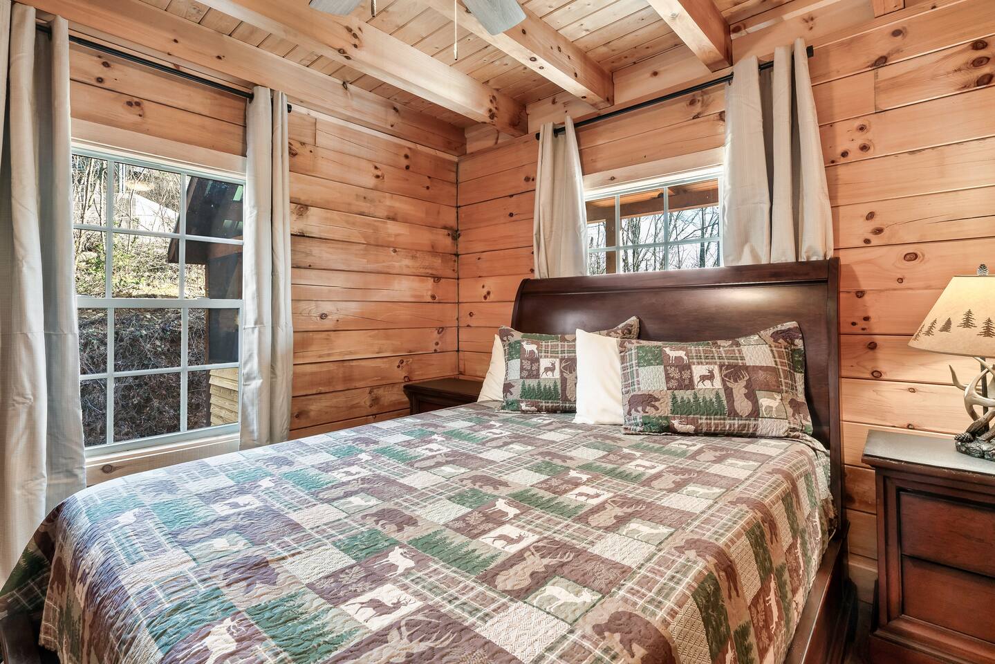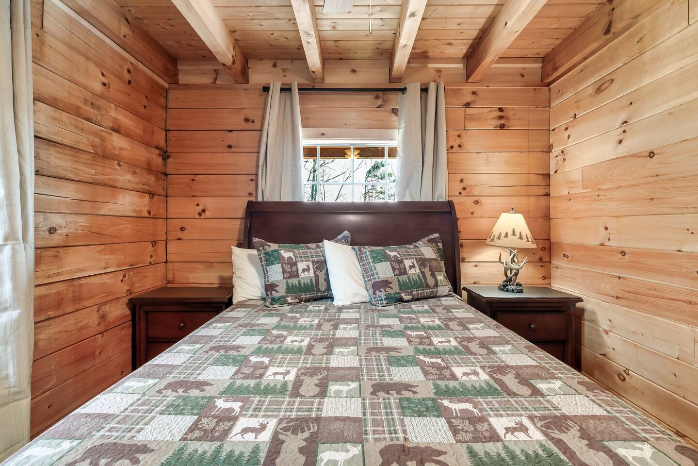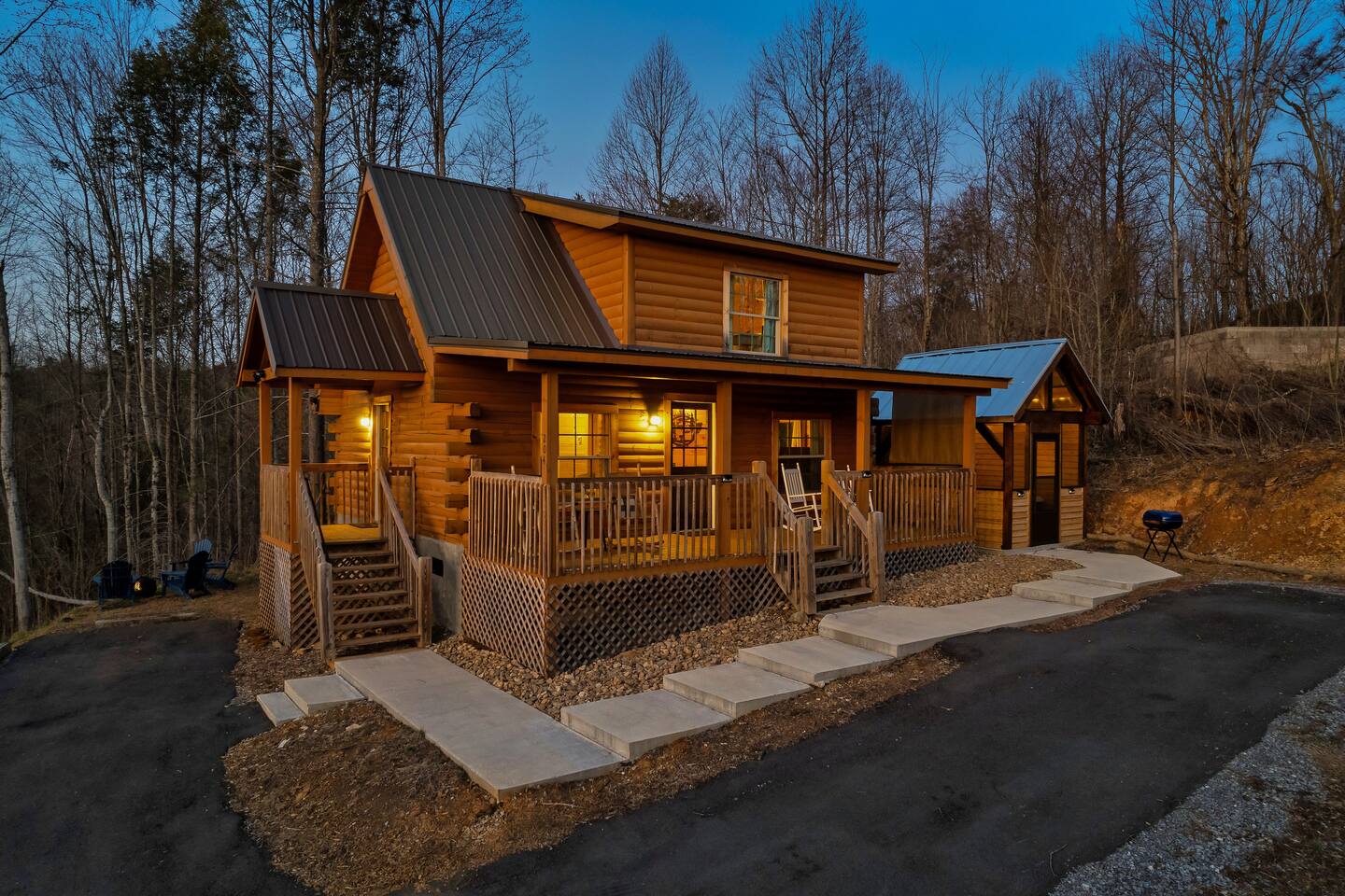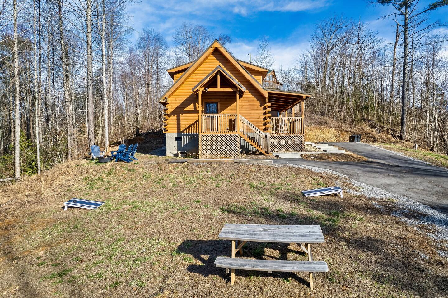 Peaceful and centrally-located true log cabin minutes from Pigeon Forge and Gatlinburg. Right off of the Spur! This cabin offers 2 bedrooms with 2 full baths that sleeps up to 4 people. Private setting but close to all attractions like hiking, Dollywood, restaurants, dinner shows and so much more. The cabin has a large front porch with rocking chairs to sit and enjoy the mountains fresh air and view! Smart tv with very fast and reliable wifi, charcoal grill. Perfect for couples, small families. Card/board games available, corn hole and a fire pit! New Hot Tub is up and running! Screened enclosure for year round use!